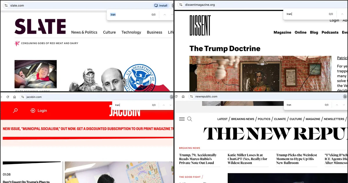 J'ai cherché dans cinq grandes publications progressistes des articles couvrant le soulèvement en Iran. Résultats combinés : zéro.